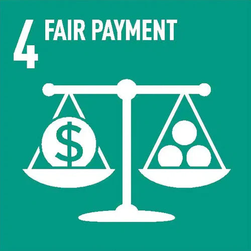 Noudatamme osallistavaa liiketoimintamallia, jossa myönteisen muutoksen luominen vähävaraisissa yhteisöissä on keskeinen menestysstrategia. Lähtökohtana on oikeudenmukaisen maksun määrittäminen vastineeksi käsityöläisiltä saamistamme tuotteista. Käytämme WFTO:n tarjoamaa Living Wage Ladder -työkalua apuna maksujen määrittämisessä, mutta viime kädessä määrästä sovitaan yhdessä käsityöläisten paikallisyhteisön kanssa.