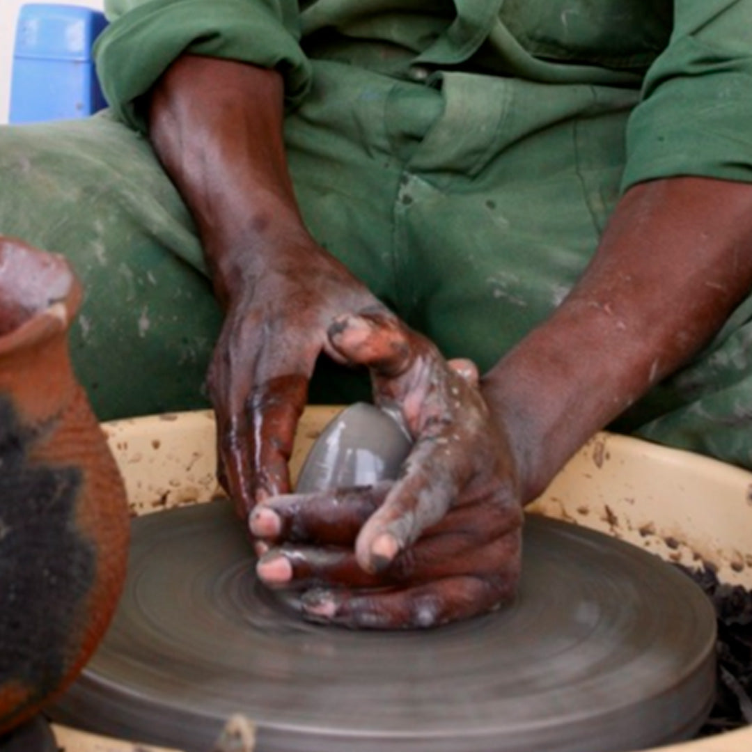 Our ceramic ornaments and candle holders are produced at Gololi Crafts, a Fair Trade workshop in Kisumu, Kenya. Gololi Crafts is a long-term partner of Mifuko; we have been collaborating with them since 2009. The workshop was founded by artisan Francis Ogonga and it supports the local community by training young unemployed members of the community, especially those that are marginalized. After learning ceramic and pottery making the women are employed by Gololi Crafts and able to make a living. In addition to teaching valuable skills, the workshop provides workers with good toilet facilities and clean water, essentials that are still rare in many parts of Kenya.