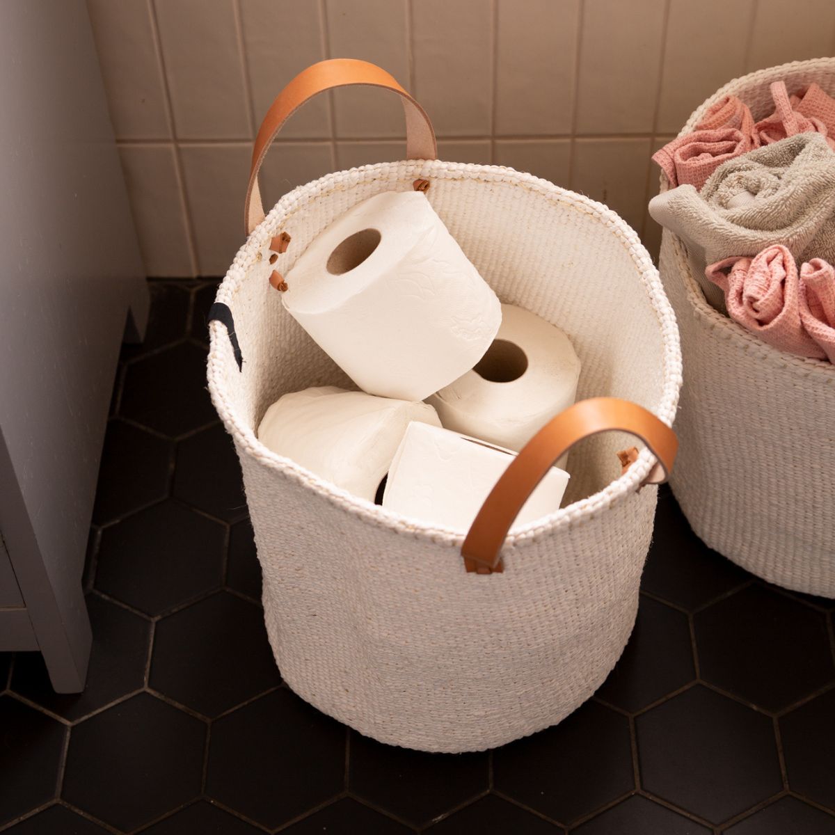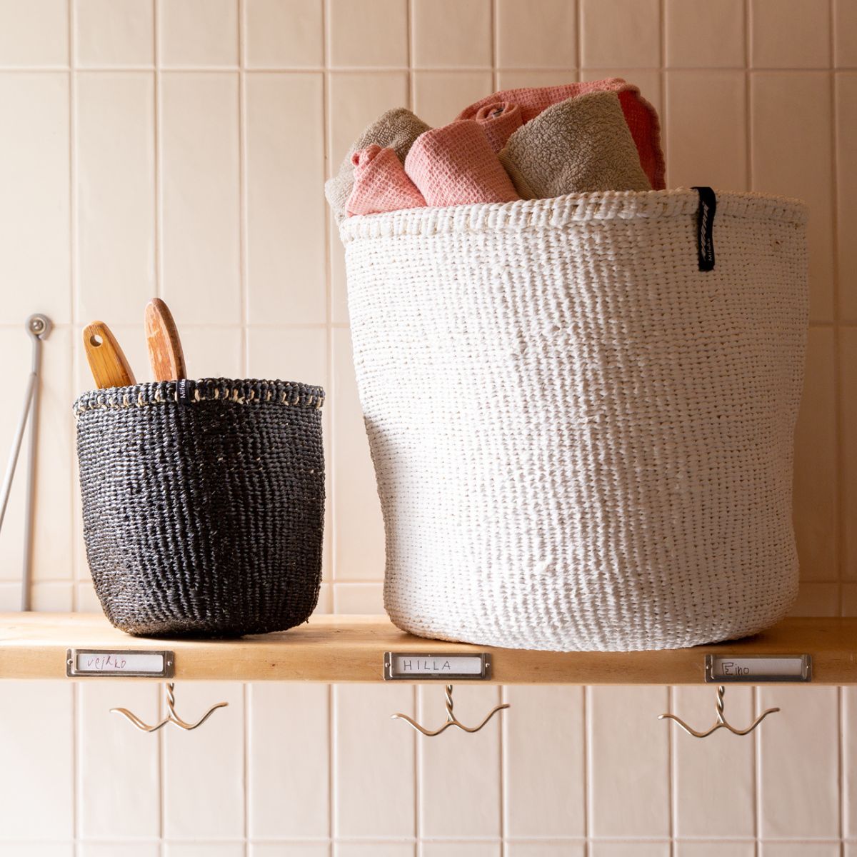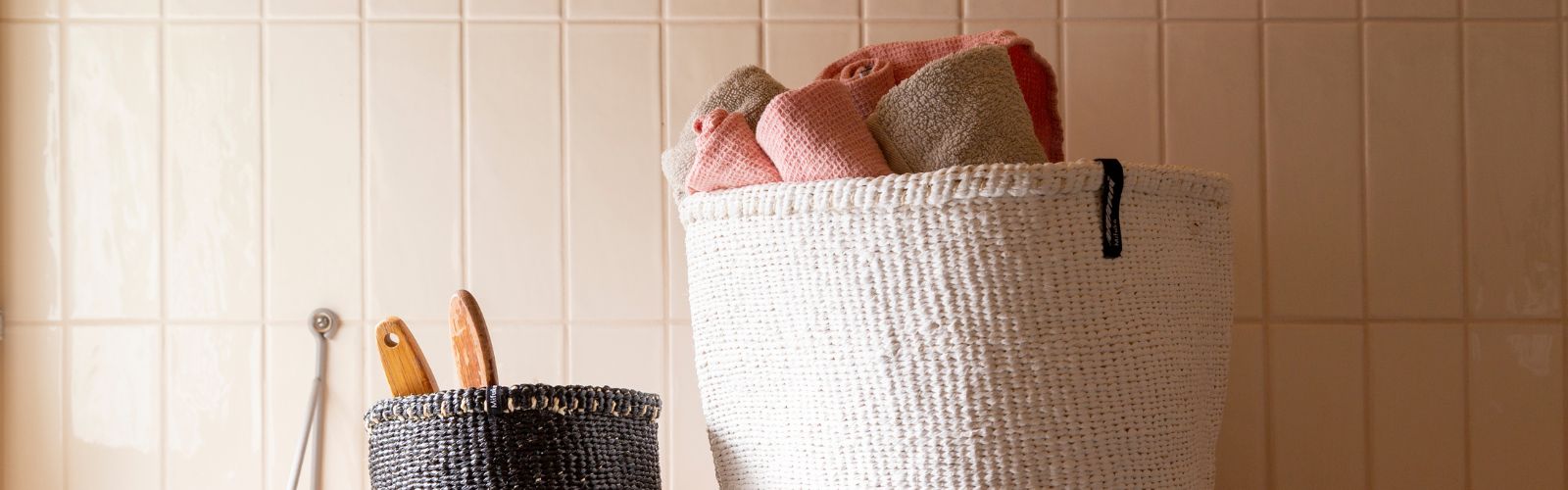 Mifuko baskets are also suitable for bathrooms! Our larger baskets are extra spacious and ideal for laundry baskets. You can make laundry day much easier by using them to separate clothes by colour before filling the washing machine. Our baskets are available in neutral colours that will fit in well with most bathroom aesthetics. Smaller basket sizes are perfect for storing bathroom accessories such as hairbrushes, combs and lotion bottles. If you have several family members living in your home, each can have a separate basket with a different colour or pattern to separate and organise their belongings.