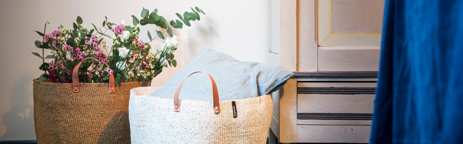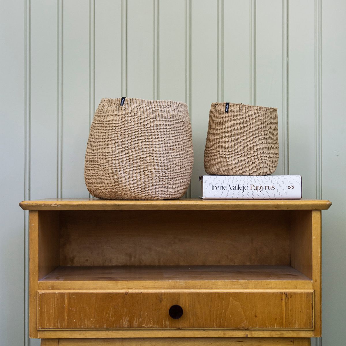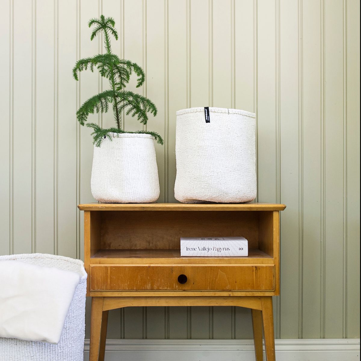 Mifuko baskets can help you organise your bedroom and make it more comfortable. Our larger baskets are perfect for storing blankets and pillows. They can be used to store decorative pillows and bedspreads as you get ready for bed at night. Smaller baskets can be used to store chargers and other everyday items that easily clutter the space. You can also use them as planter covers – houseplants are a great way to improve indoor air quality! Explore your creativity by mixing and matching different basket sizes, colours and materials to create a beautiful and unique space for relaxation.