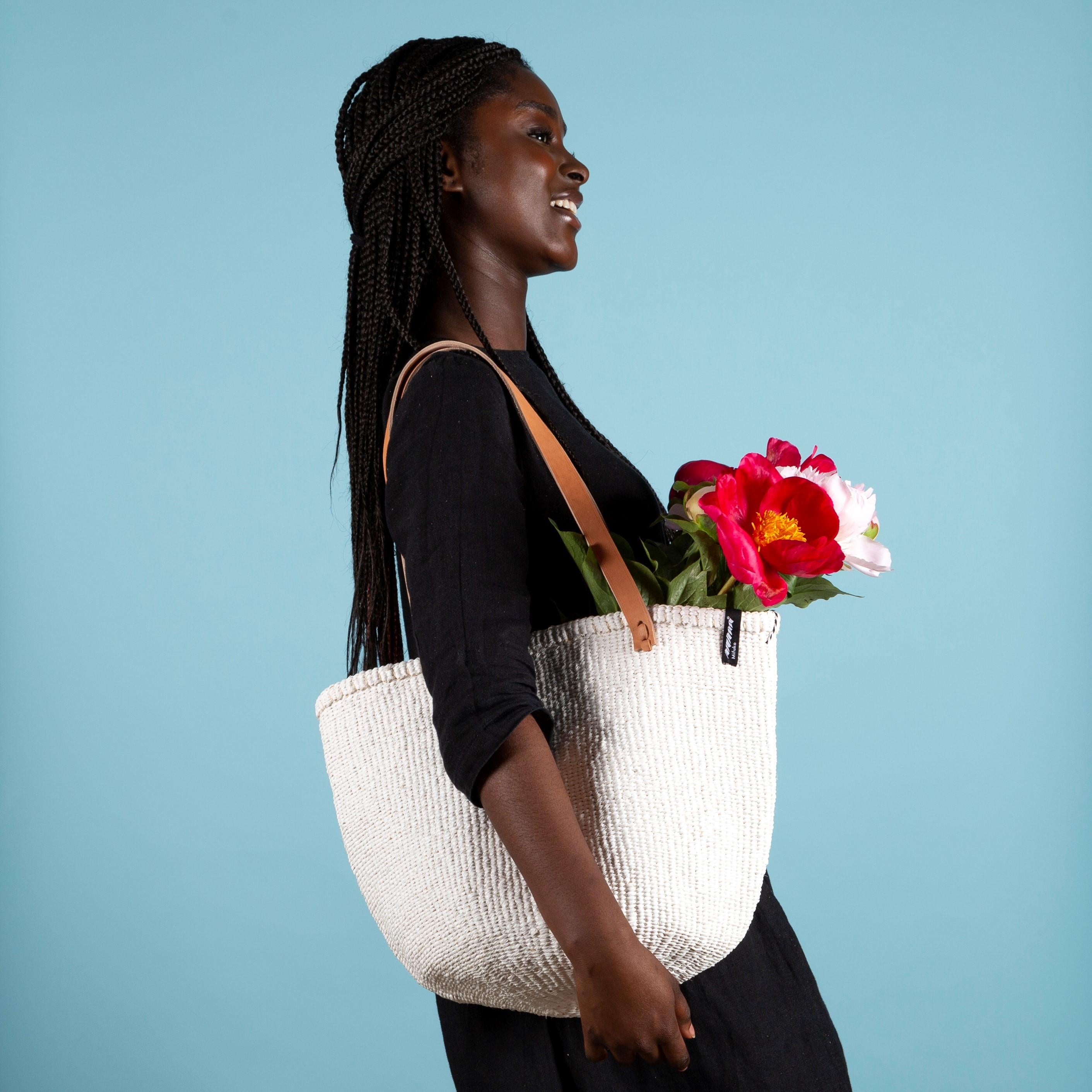 Our market baskets are both fashionable and practical: use the basket as a carrier, shopping bag or storage basket. Mifuko market baskets are strong enough to carry even heavy shopping and the sturdy leather handles make carrying the basket easy and comfortable.