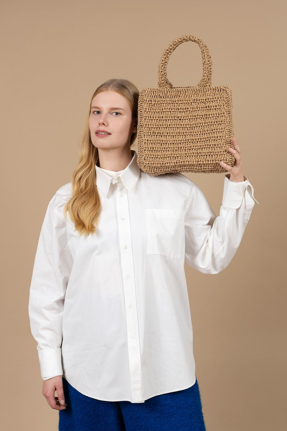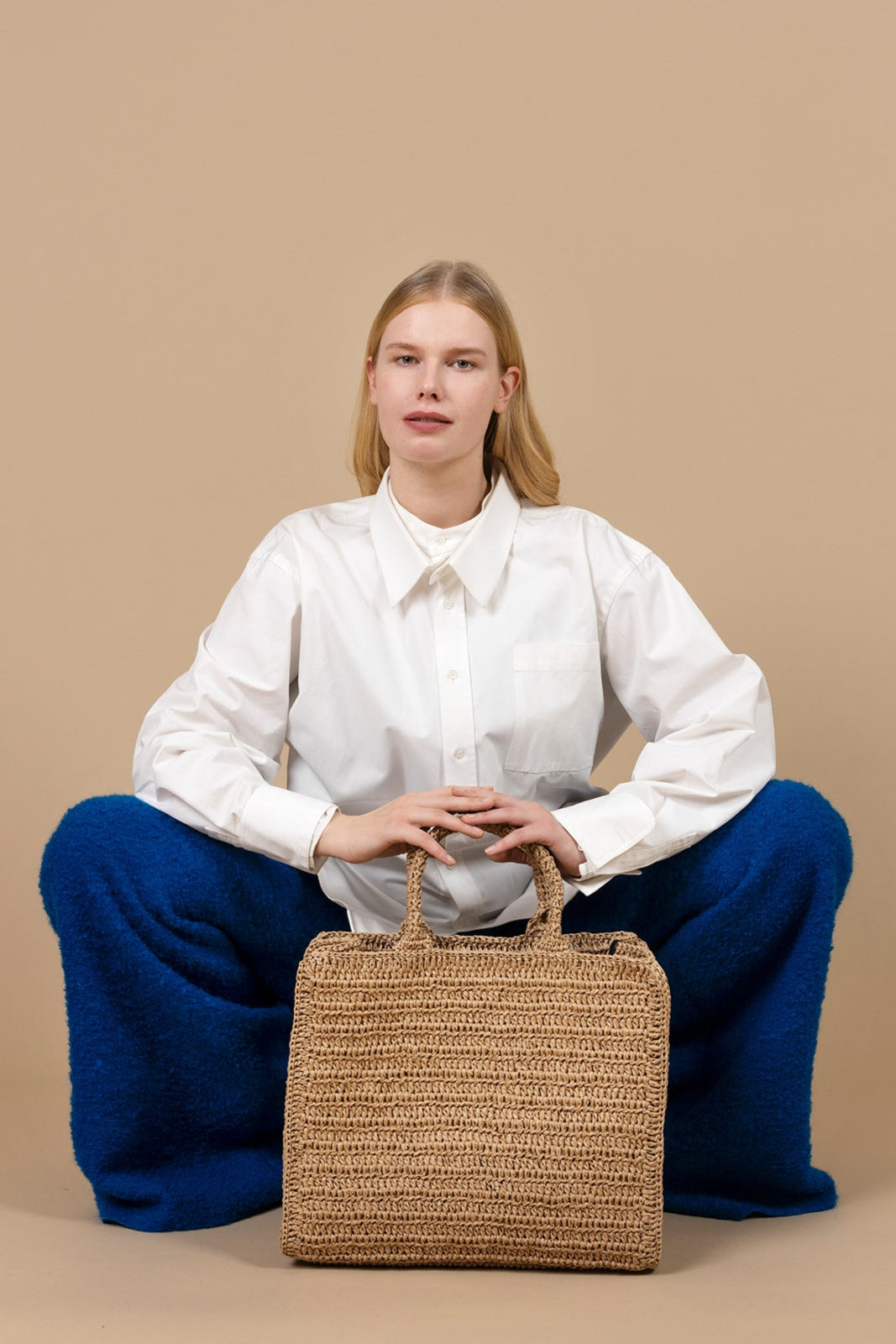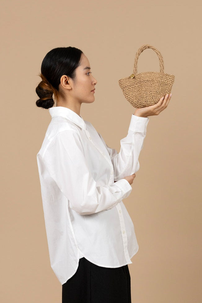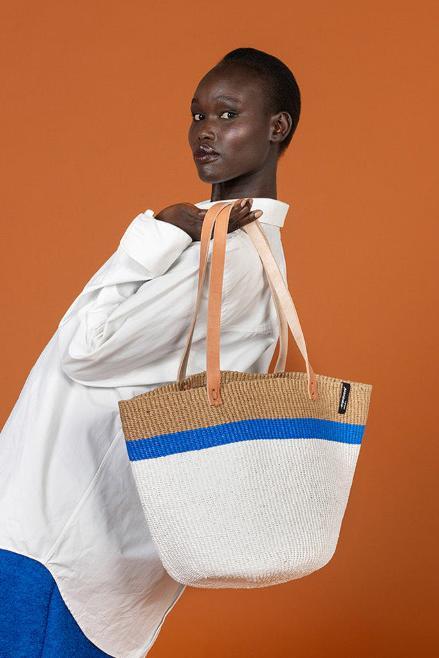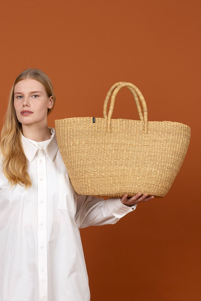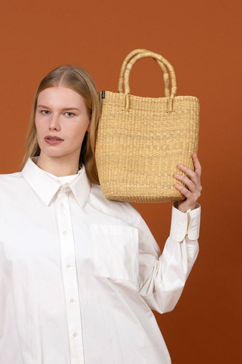 Bolga basket bags come in two sizes, S and M. Both sizes have handles that makes them easy to carry.